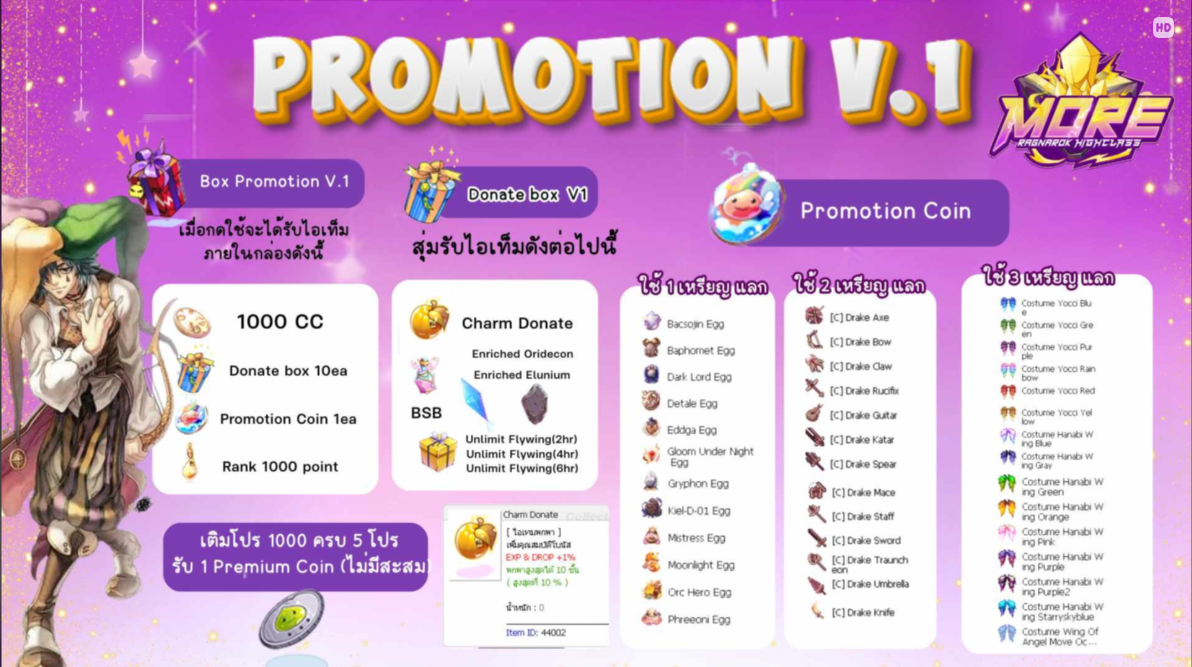 จะได้รับไอเทม ![](https://2181847944-files.gitbook.io/~/files/v0/b/gitbook-x-prod.appspot.com/o/spaces%2FyEHZTneUmKczPix7xYwm%2Fuploads%2FugFAsBfsEHdZqSskMdVm%2F17257.png?alt=media\&token=f439950d-ba76-4e83-a063-5817972d4e58) Promotion Box x1\